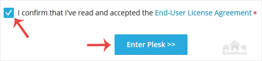 Final Step: Scroll down to the end of the page, read and accept the End-User License Agreement. Click on Enter Plesk.